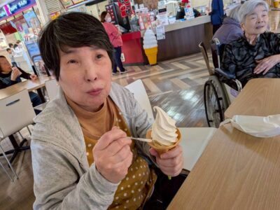 みんなでソフトクリームを食べながらまったり休憩しました。