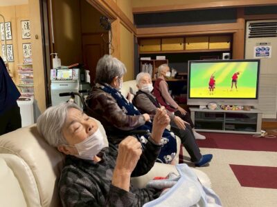 午後のひとときには、テレビを使った体操の時間を設けています。