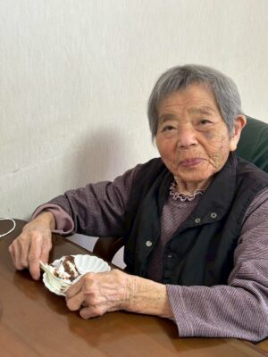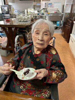 職員からの「おめでとうございます!」の声に、主役のご利用者さまも思わずにっこり。